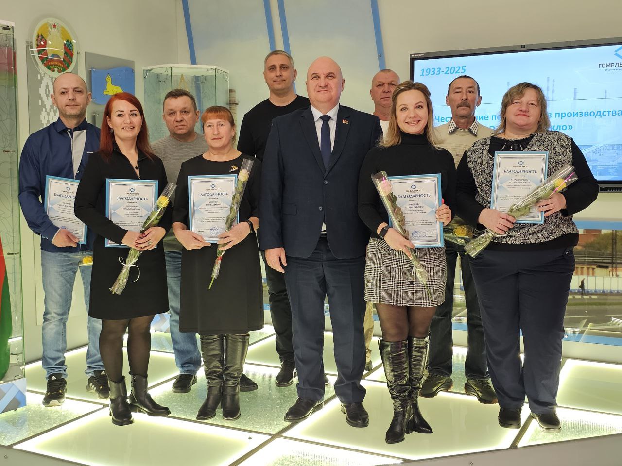 Сегодня в историко-демонстрационном зале ОАО «Гомельстекло» состоялось торжественное чествование передовиков производства — тех, кто своим трудом, ответственностью и профессионализмом вносит весомый вклад в развитие предприятия.