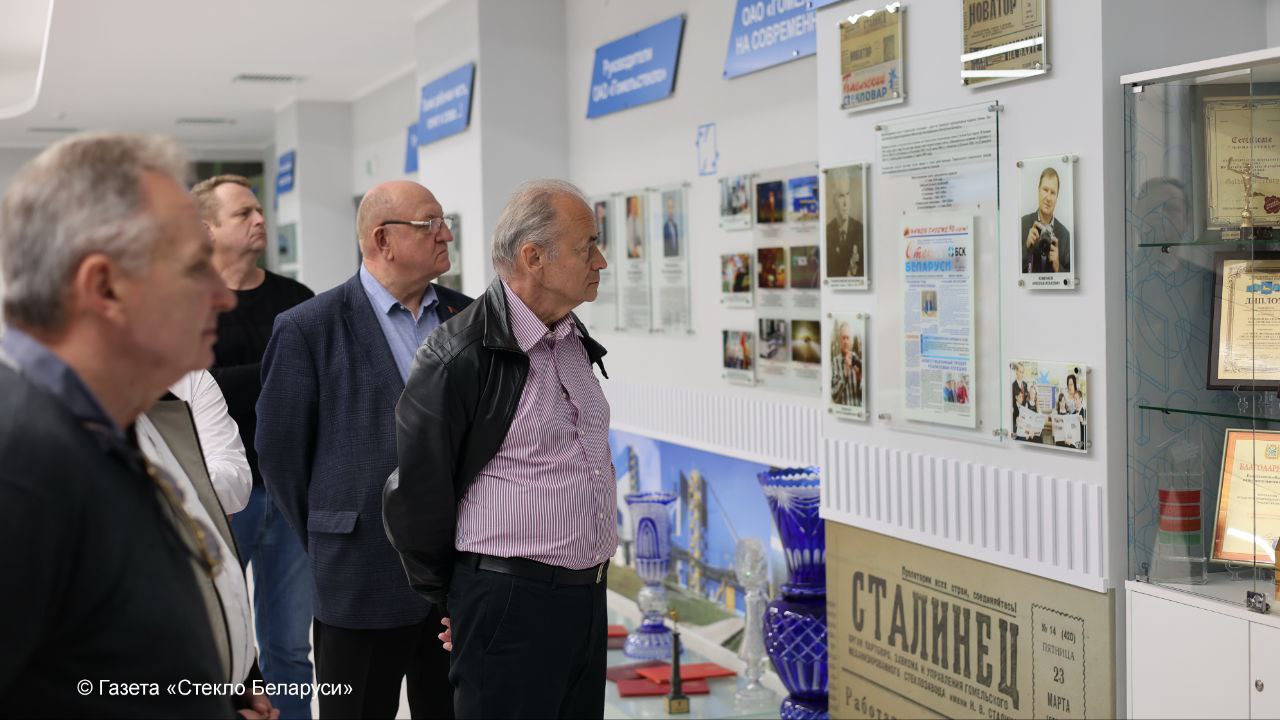 В историко-демонстрационном зале гости узнали и познакомились с богатой историей ОАО “Гомельстекло” – единственного в Республике Беларусь производителя листового бесцветного стекла, многослойного стекла и энергосберегающего стекла больших форматов.