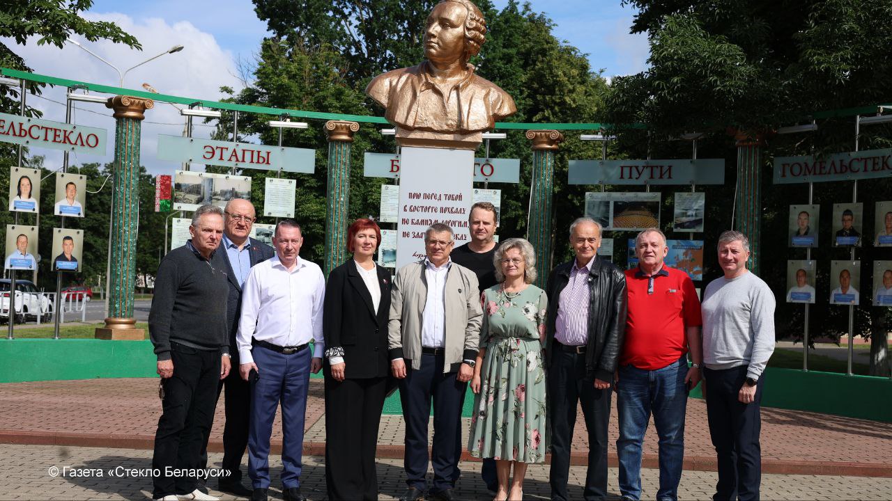 Гости возложили венок и цветы к памятнику гомельским стеклозаводцам, погибшим в годы Великой Отечественной войны.