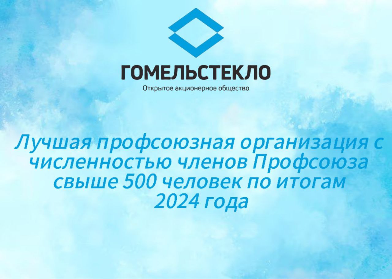По итогам смотра-конкурса за 2024 год, посвящённого определению лучших первичных профсоюзных организаций страны, ППО ОАО «Гомельстекло» уверенно вошло в число победителей среди организаций с численностью членов Профсоюза свыше 500 человек.