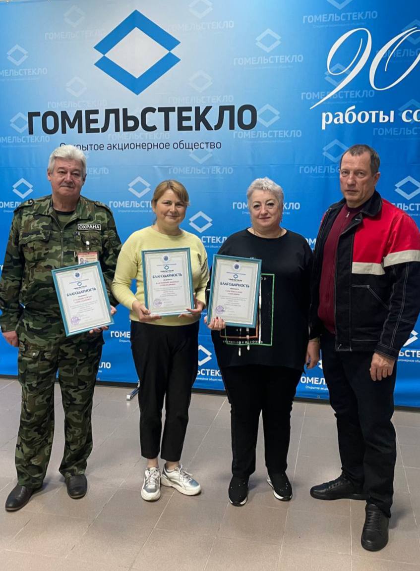 В торжественной обстановке вручили Благодарности Первичной профсоюзной организации ОАО ГОМЕЛЬСТЕКЛО за добросовестное исполнение обязанностей общественного инспектора по охране труда: