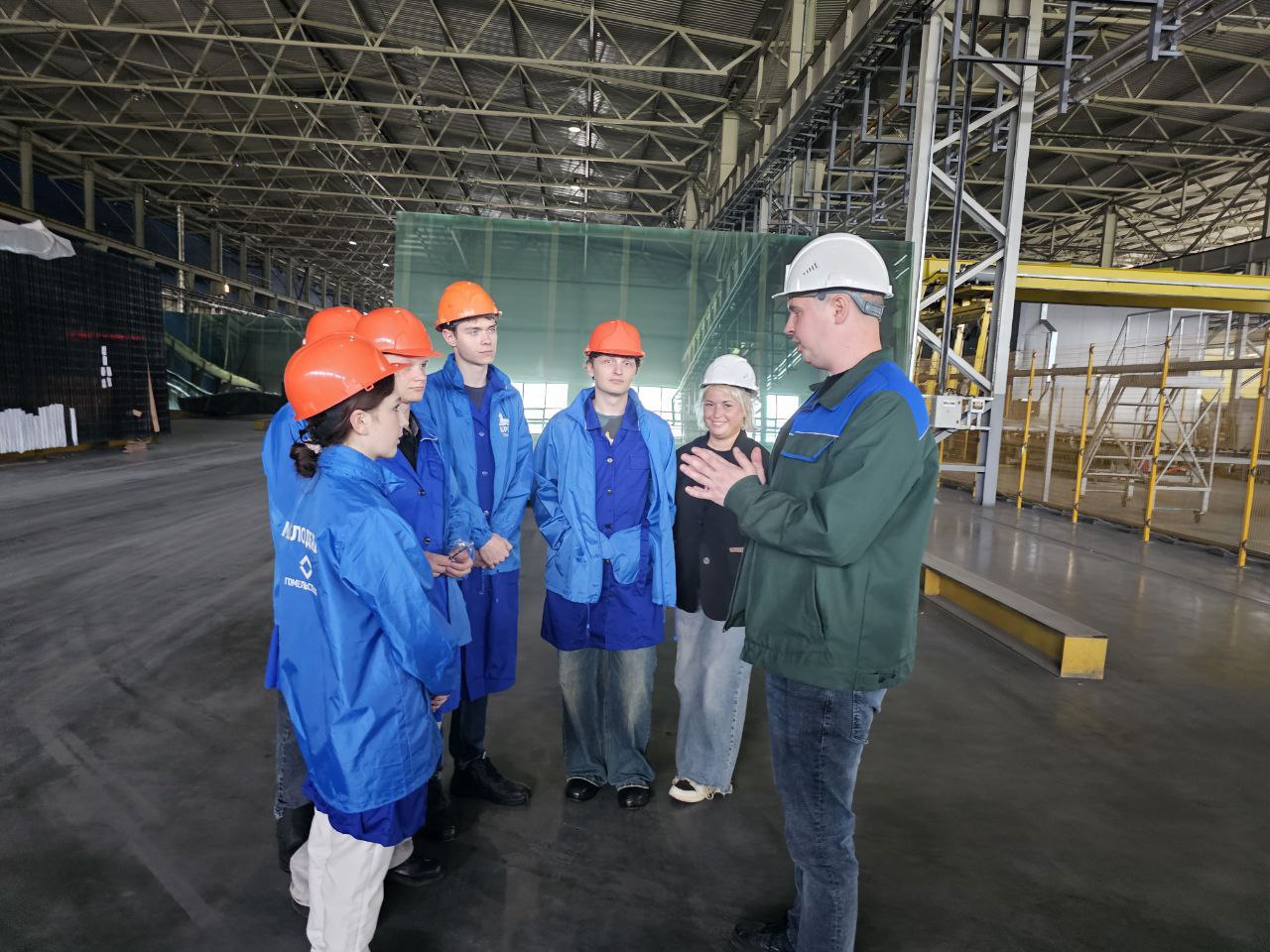 Для членов студенческого отряда провели экскурсию по заводу с полным циклом производства стекла - от подготовки сырья до готовой продукции: демонстрация технологической линии, объяснение физико-химических свойств стекла, встреча с сотрудниками предприятия, интерактивные элементы.