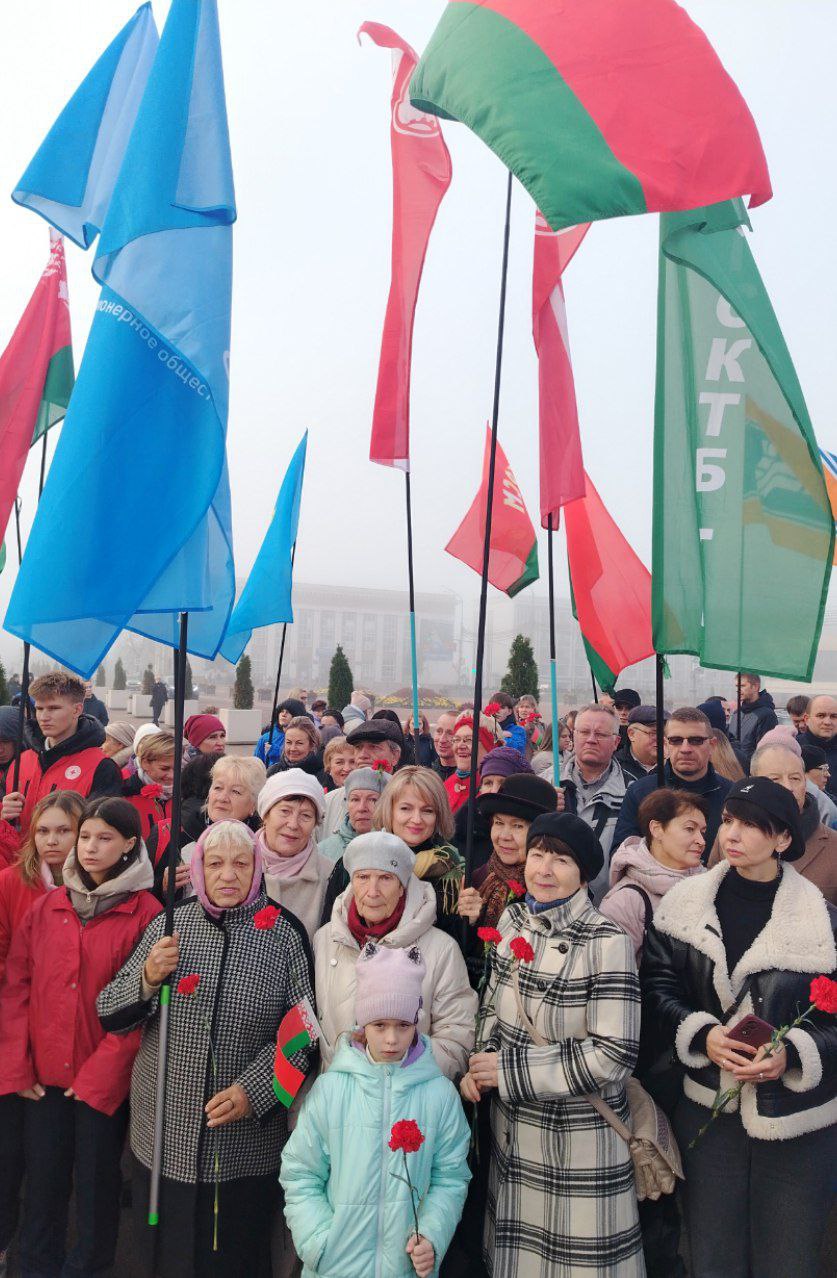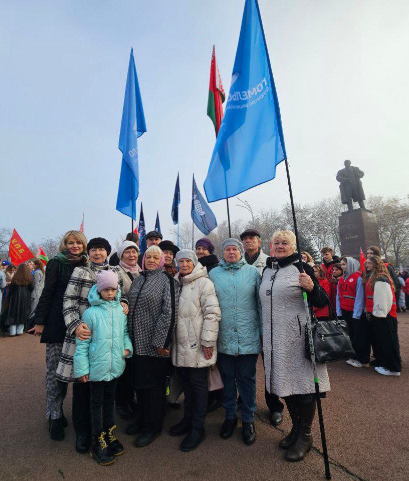 7 ноября работники и представители ветеранской организации ОАО «Гомельстекло» приняли участие в митинге на площади Ленина, посвящённом Дню Октябрьской революции.