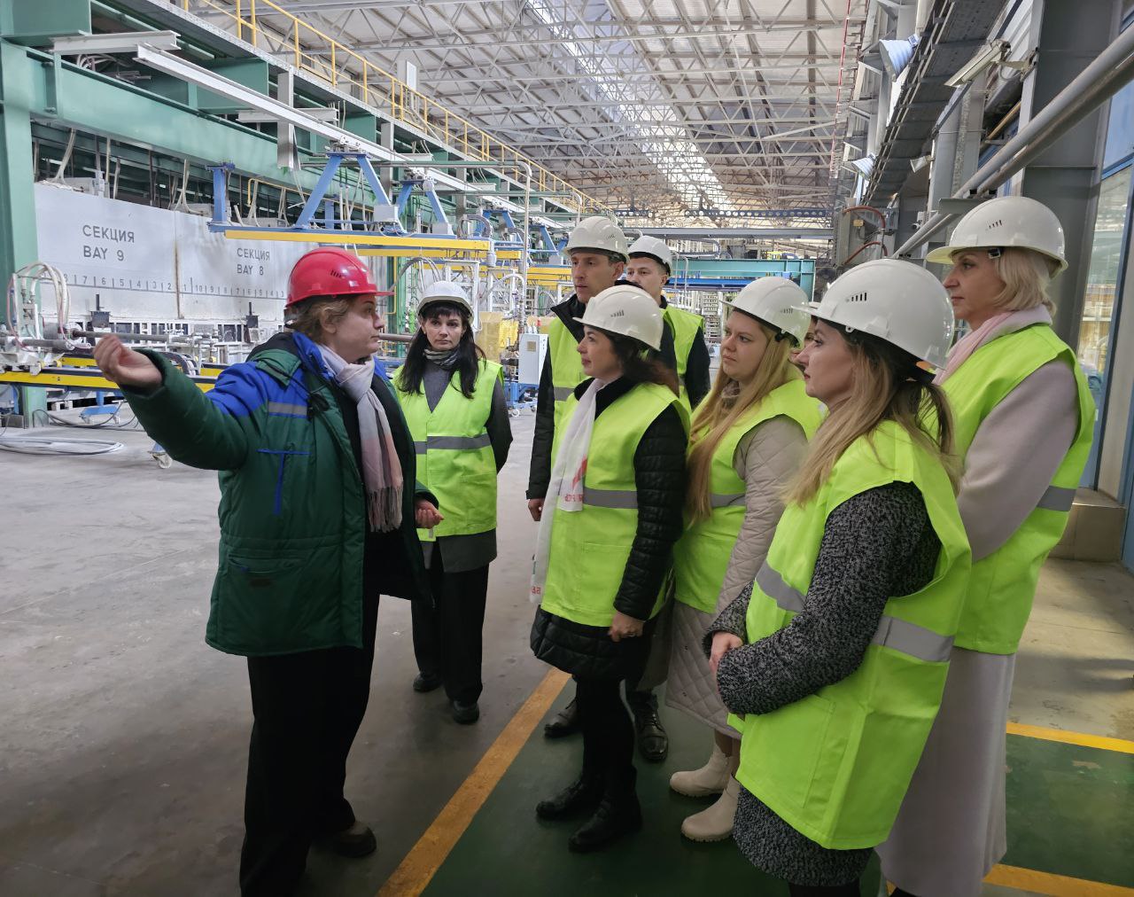Практическая часть экскурсии продолжилась в производственных цехах. Активисты посетили склад песка составного цеха и технологическую линию №2, где своими глазами увидели полный цикл рождения стекла — от сырья до готового продукта.