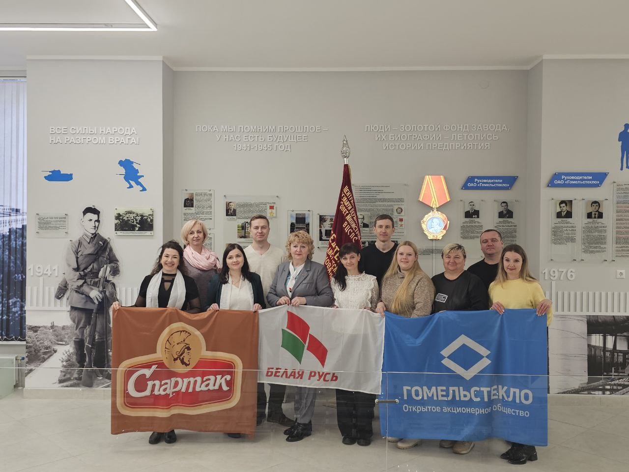 Сегодня делегация активистов кондитерской фабрики «Спартак» побывала на ОАО «Гомельстекло». Визит начался с посещения историко-демонстрационного зала, где гости подробно ознакомились с летописью завода, узнали о знаменитых трудовых династиях и социальной политике предприятия. Ключевым моментом программы стало возложение цветов к памятнику стеклозаводцам, погибшим в годы Великой Отечественной войны.