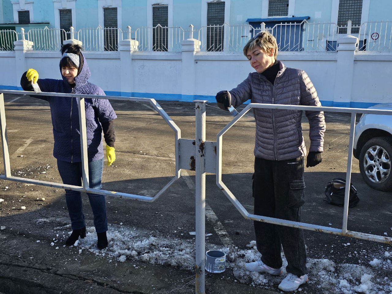 Основной фронт работ развернулся вдоль производственных корпусов. Главной задачей, поставленной перед участниками субботника, стало обновление металлических ограждений, расположенных по периметру зданий стеклозавода. За зиму конструкции утратили былую яркость, и работники завода оперативно вернули им эстетичный вид.